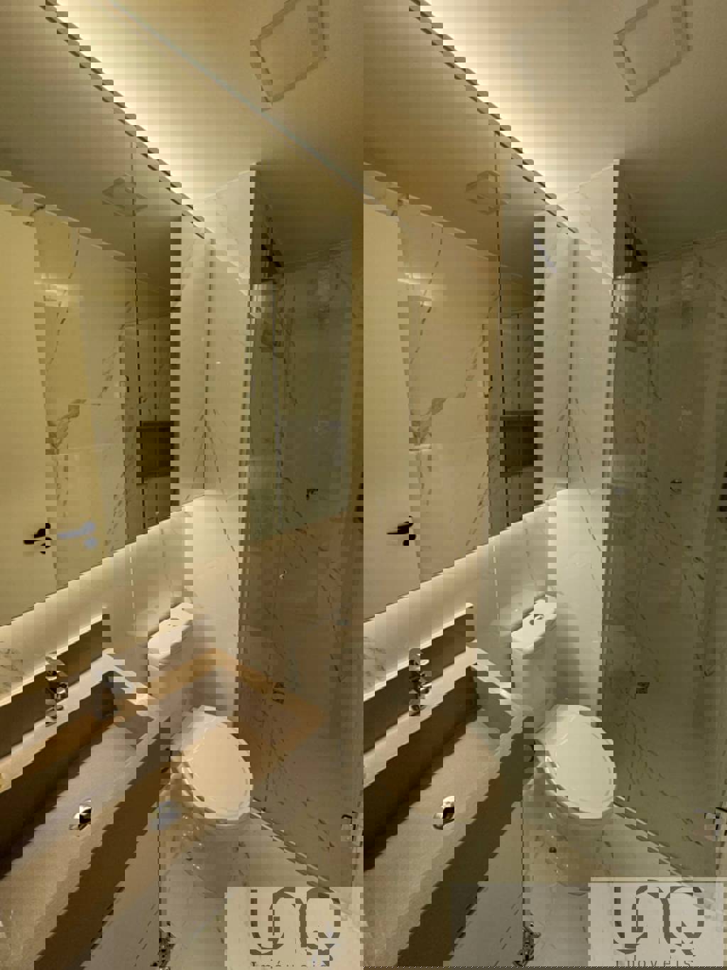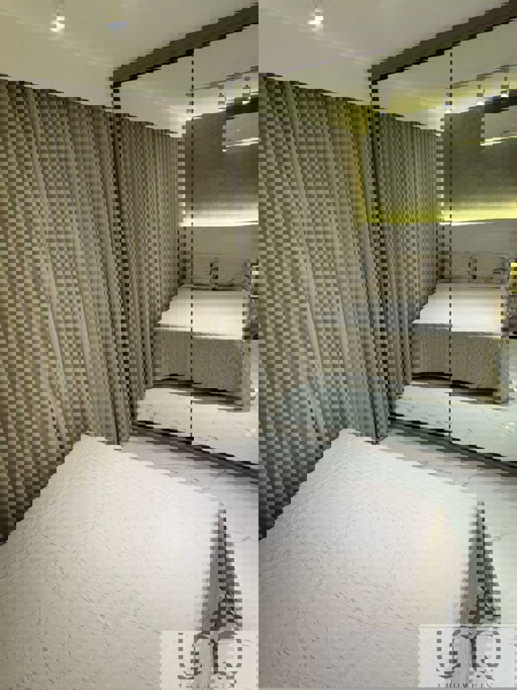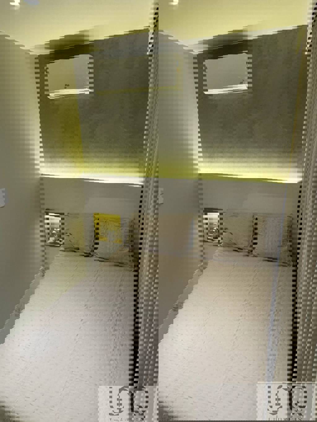 Cabeceira com iluminação e nicho iluminado
