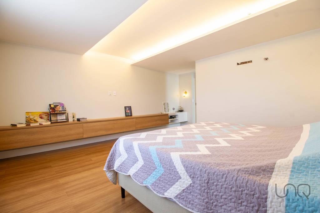 No segundo andar: área íntima da casa, com quatro suítes amplas e marcenaria de qualidade, o destaque fica para a suíte master com closet.