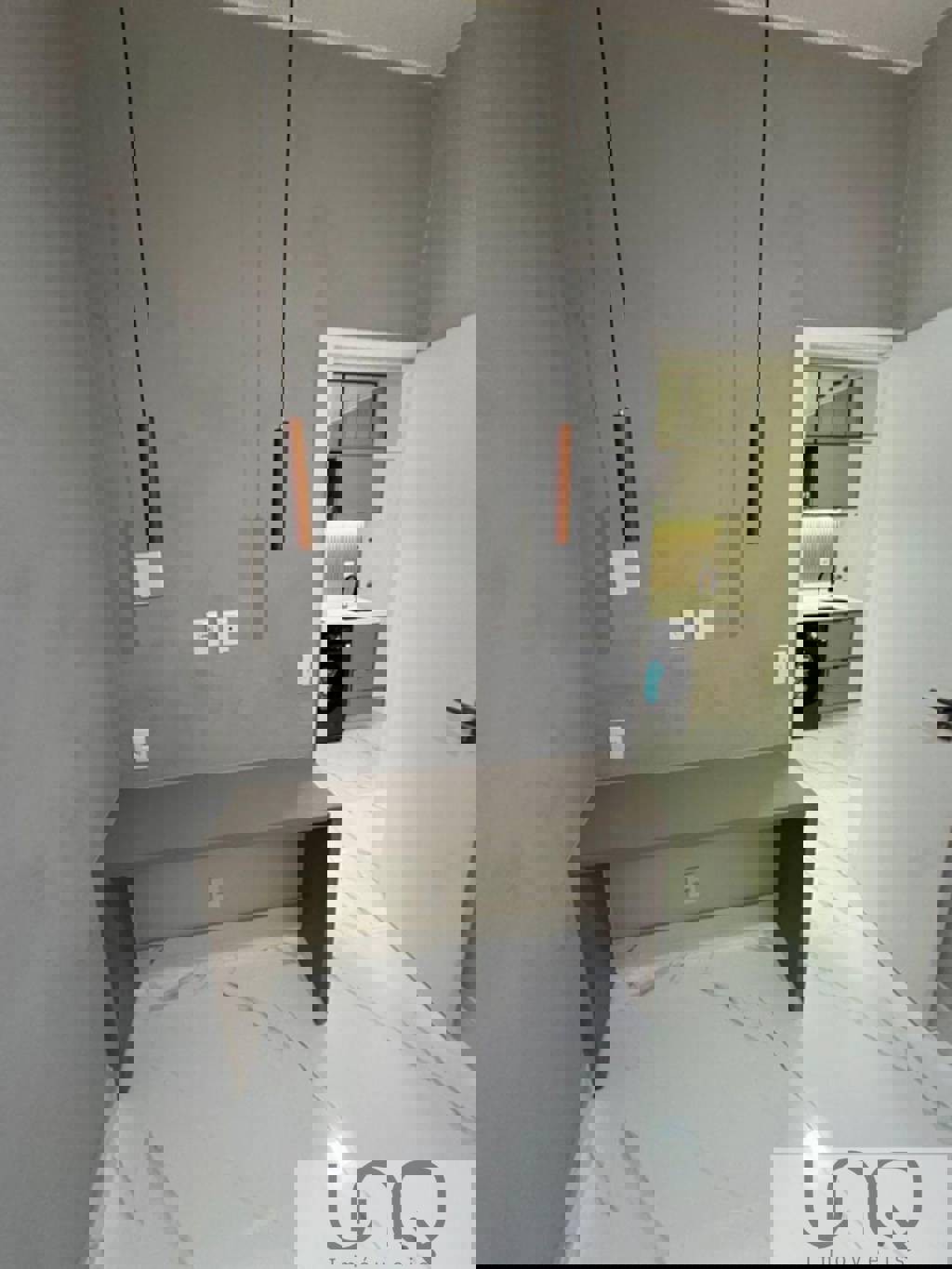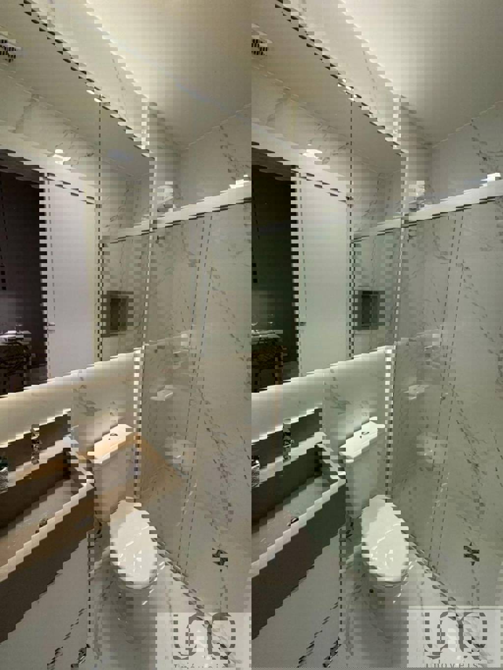 -Piso em Porcelanato de marmore branco grande dimensão;