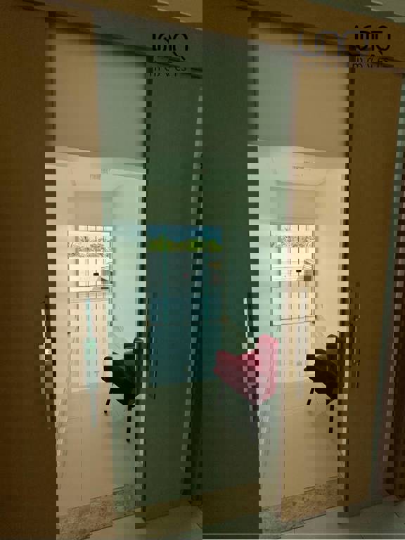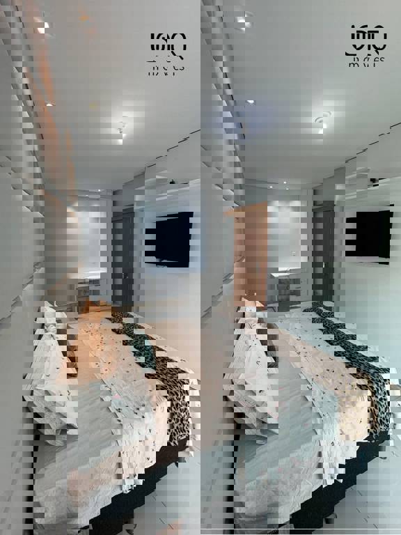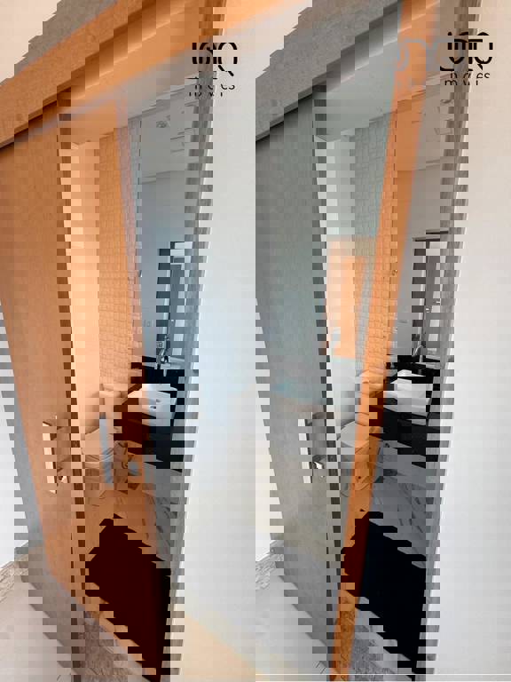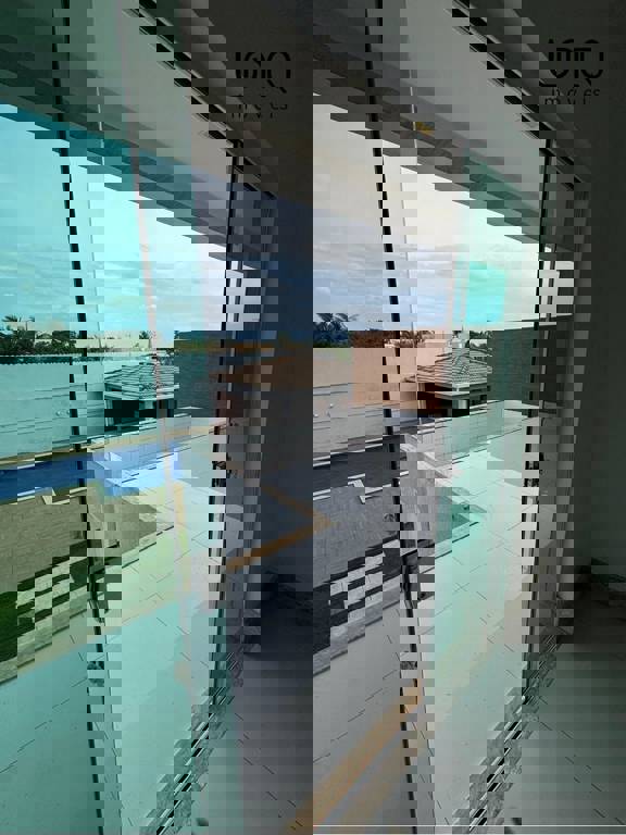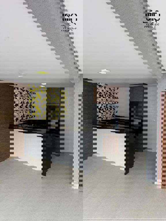 Oratório e home theater com saída para varanda com vista para a piscina e 1 suíte com bancada de selestone.